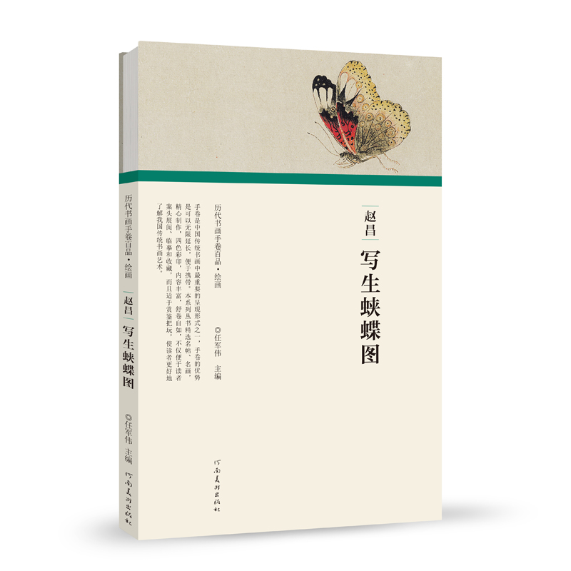 (歷代書畫手卷百品.繪畫)趙昌·寫生蛺蝶圖 手卷是中國(guó)傳統(tǒng)書畫*重要的形式之一。手卷的好處是可以無(wú)限制延長(zhǎng),便于攜帶,內(nèi)容豐富,舒卷自如。不僅便于案頭展閱、臨摹和收藏,而且適于賞鑒把玩。該系列計(jì)劃選取歷代經(jīng)典書畫手卷百品,采用高清晰度圖片,近原大四色印刷,能夠更好地領(lǐng)略原作的風(fēng)貌。本冊(cè)為北宋畫家趙昌的《寫生蛺蝶圖》。