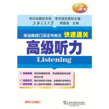 《英語高級(jí)口譯證書考試快速通關(guān):高級(jí)聽力》嚴(yán)格按照2005年大綱編寫,具有很強(qiáng)的針對(duì)性和實(shí)用性,內(nèi)容更廣泛、更典型、更好地體現(xiàn)英語高級(jí)口譯的特點(diǎn)和要求,使用更加方便,以幫助學(xué)生從容應(yīng)對(duì)英語高級(jí)口譯資格證書考試,培養(yǎng)更多高素質(zhì)、高層次的英語口譯工作者!